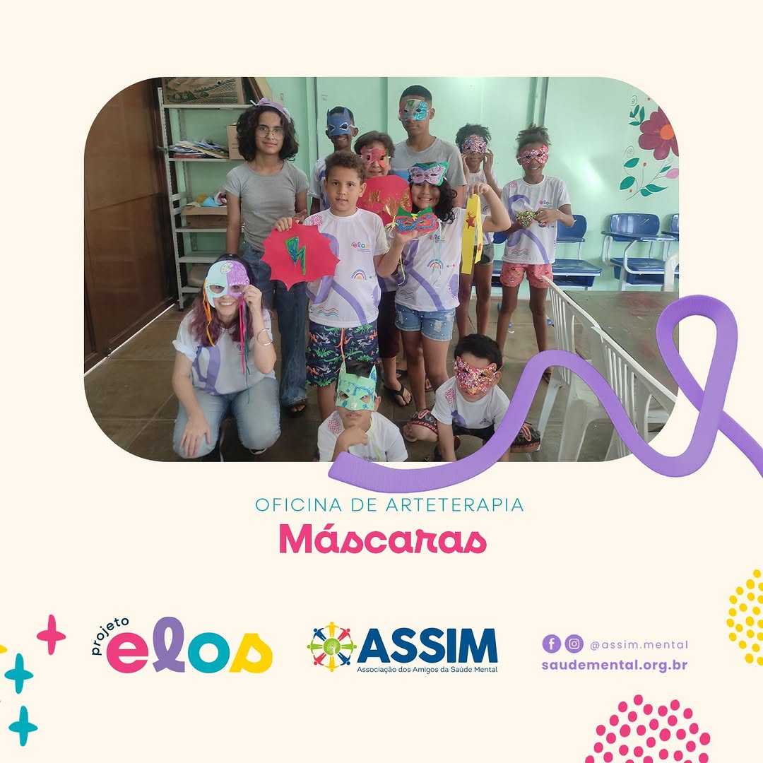 Finalizando a sequência de oficinas, as crianças continuaram a dar asas à imaginação, criando máscaras que celebraram suas habilidades e sonhos. A atividade promoveu ludicidade, autoconhecimento e reforço da autoestima.