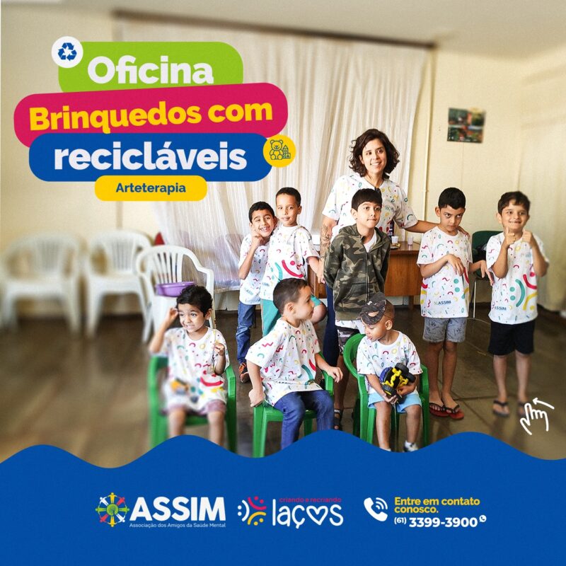 No Projeto Criando e Recriando Laços, da ASSIM, estamos entusiasmados em compartilhar nossa mais recente Oficina de Arteterapia – Artesanato Reciclável (Confecção de Brinquedo), uma jornada cheia de cores e aprendizados envolvendo crianças portadoras de deficiência da rede de ensino pública do Riacho Fundo I.