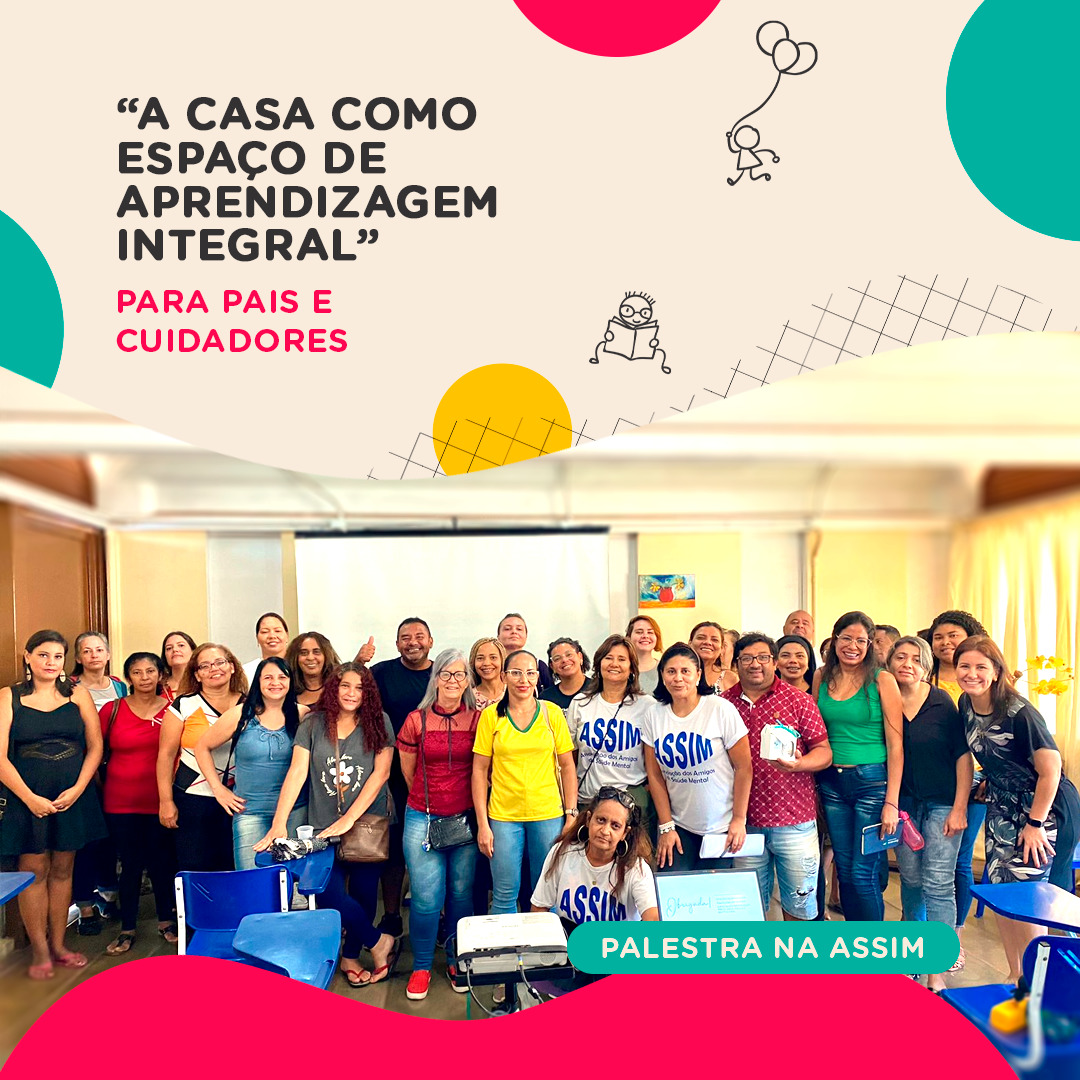 No dia 25 de março de 2023, a ASSIM realizou uma palestra com o tema “A Casa Como Espaço de Aprendizagem Integral” para pais e cuidadores de crianças portadoras de deficiência que são alunos da rede pública de ensino. A palestra foi parte do Projeto “Criando e Recriando Laços”, que tem como objetivo fortalecer a relação entre pais, cuidadores e crianças com deficiência.