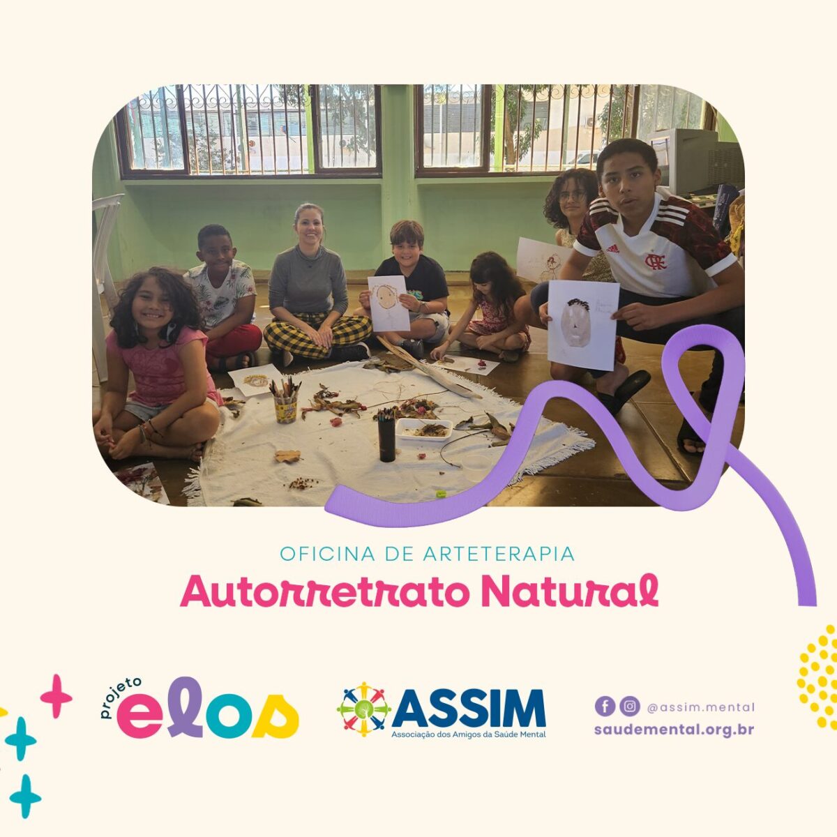 Confira as atividades dos grupos A, B e C do Projeto Elos, promovidas pela ASSIM. Cada oficina trabalhou a percepção sensorial e a conexão com a natureza por meio da arte.